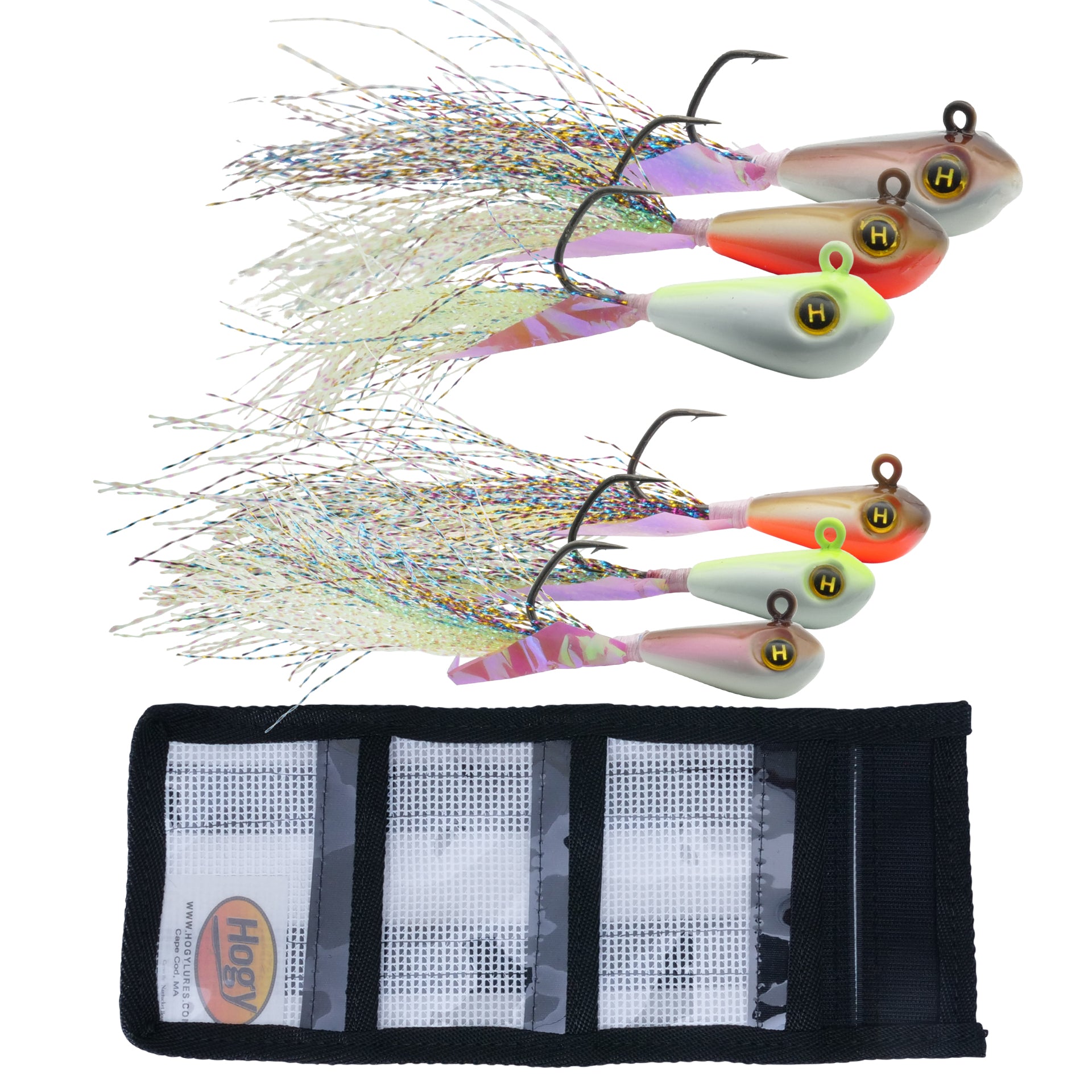 We love tackle storage systems at Hogy. Over the years we have moved away from traditional tackle boxes and toward roll-up tackle bags. There are no broken hinges, spilled boxes and they are easy to store and clean out. Our tackle bags are designed with ergonomics in mind. Each tackle bag is self-closing and comes in multiple colors for coded tackle storage.