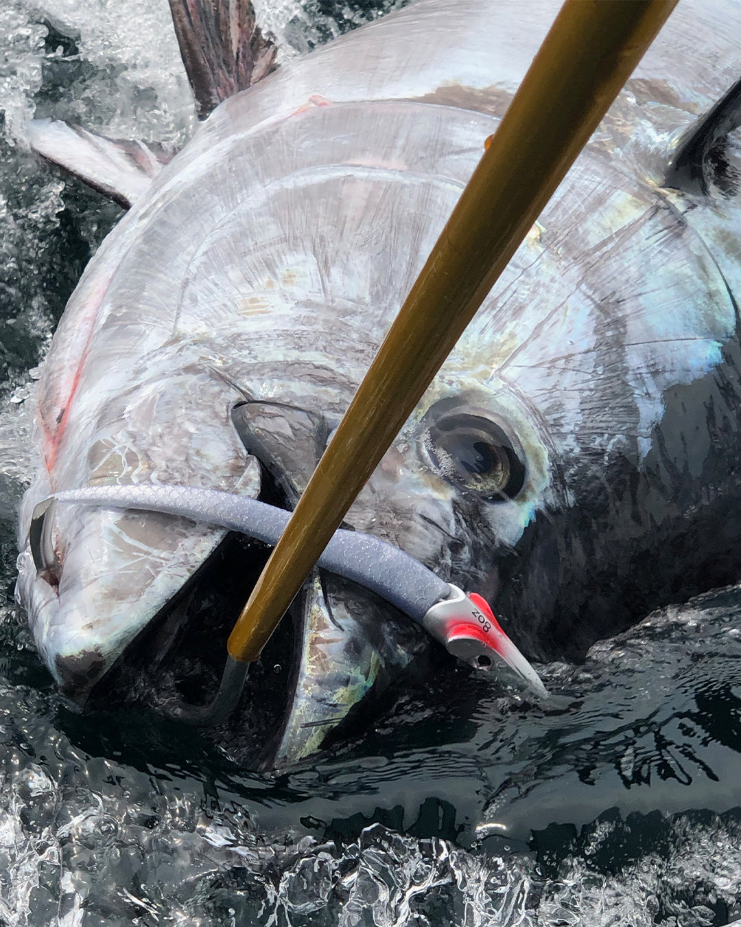 Dead Stick: Drop the jig to the desired depth and hold it still in the water column to attract passively feeding tuna.