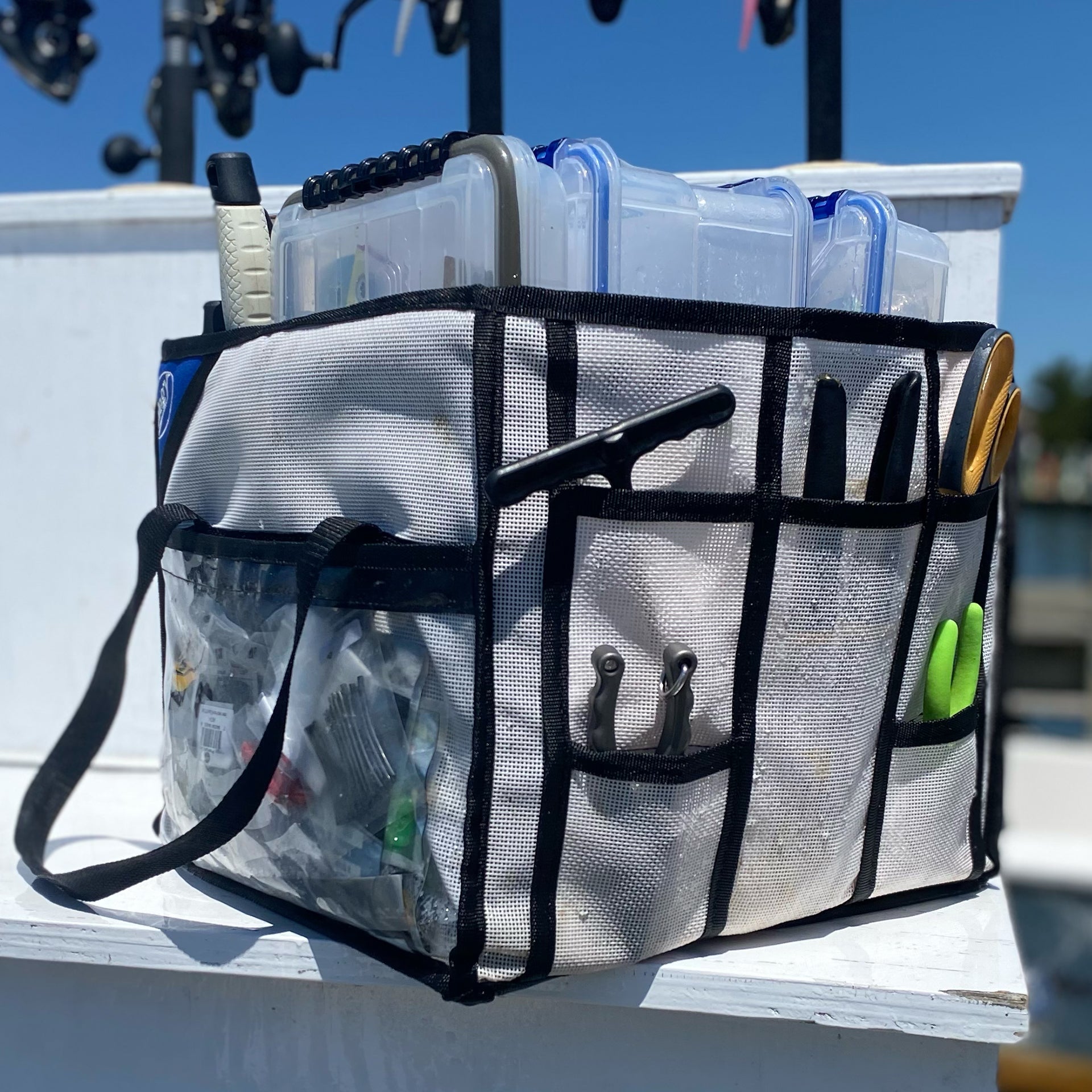 Waterproof bags left cracked open on center consoles often trap salt spray inside. The Mesh Crate does the opposite. Water hits it. Water leaves it. Gear stays visible and fishable.