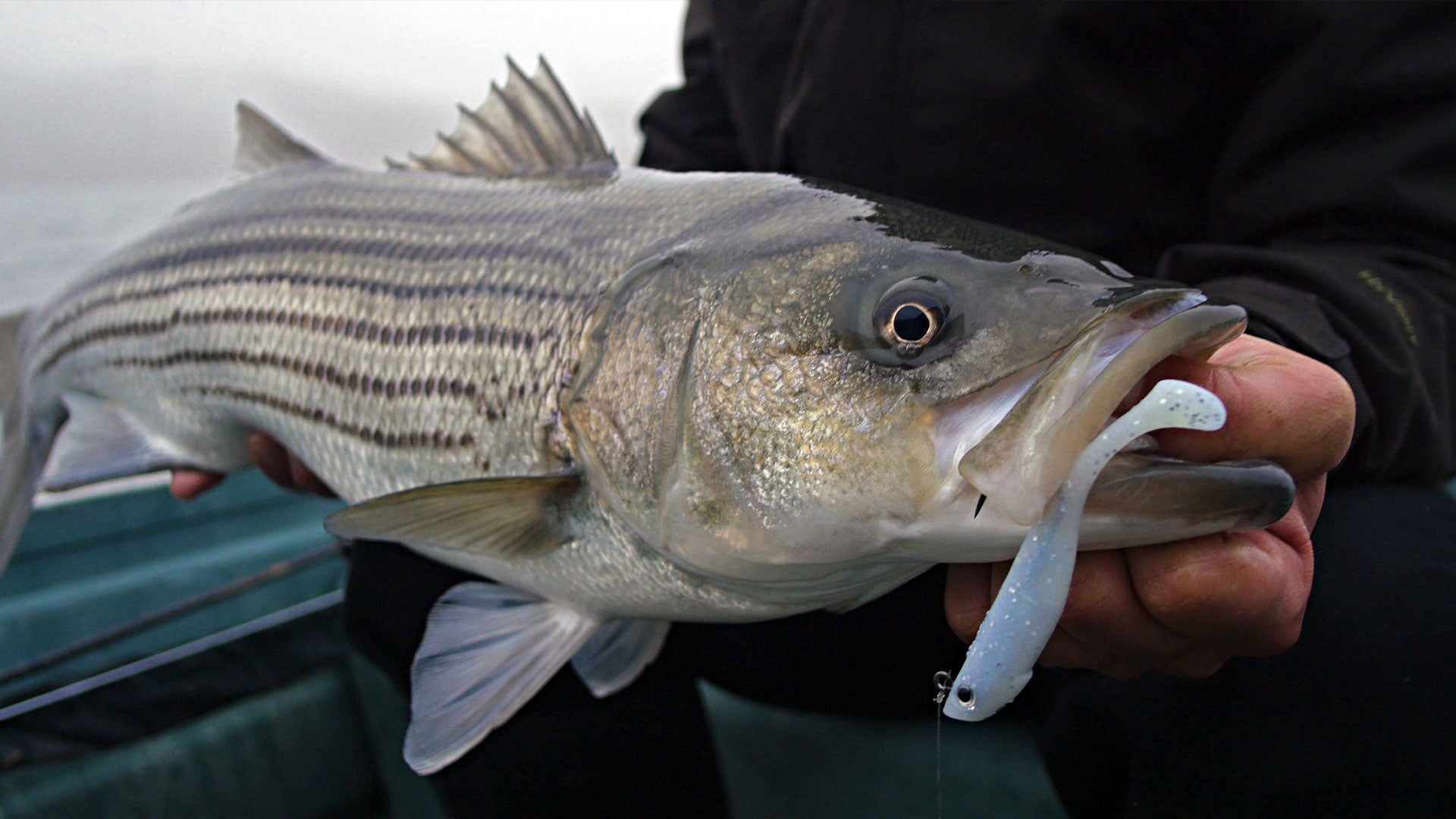 Topwater Schoolie Striped Bass Fishing with Hogy Pro Tails
