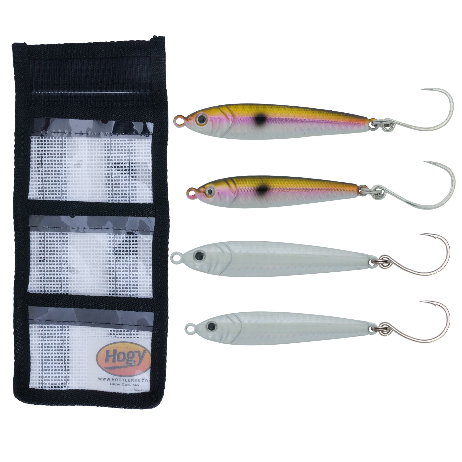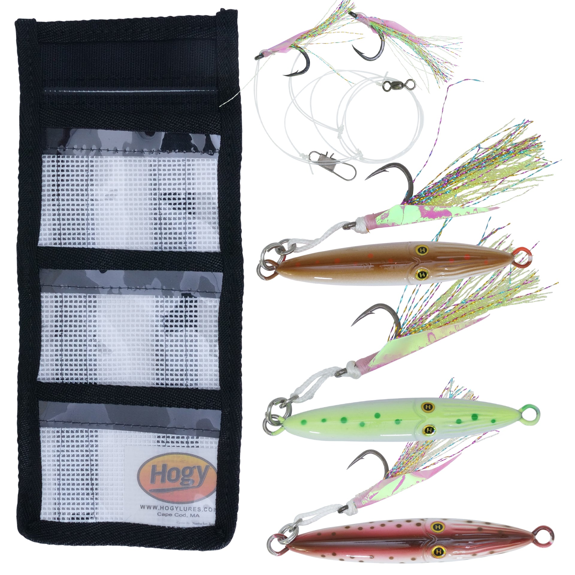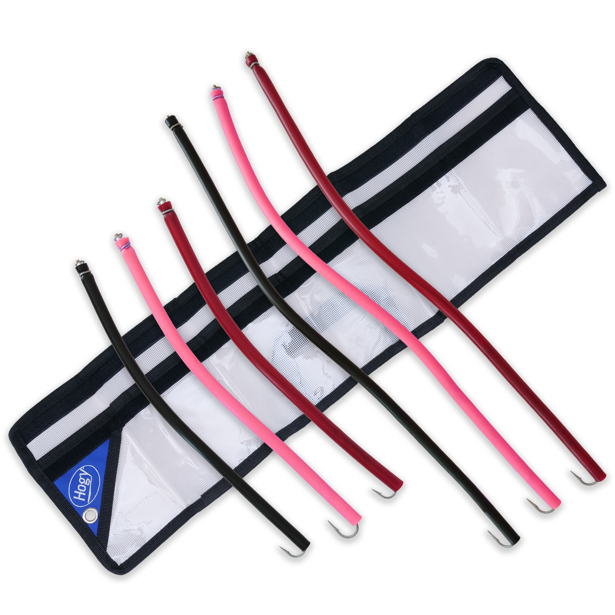 We love tackle storage systems at Hogy. Over the years we have moved away from traditional tackle boxes and toward roll-up tackle bags. There are no broken hinges, spilled boxes and they are easy to store and clean out. Our tackle bags are designed with ergonomics in mind. Each tackle bag is self-closing and comes in multiple colors for coded tackle storage.